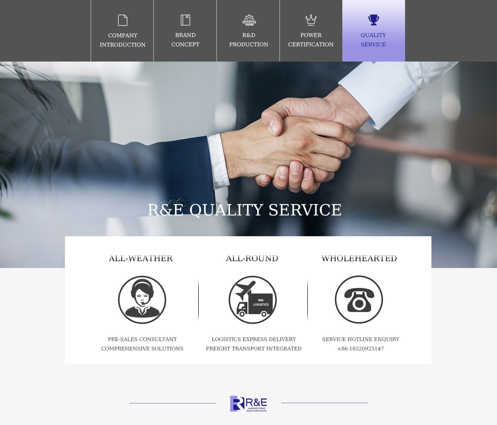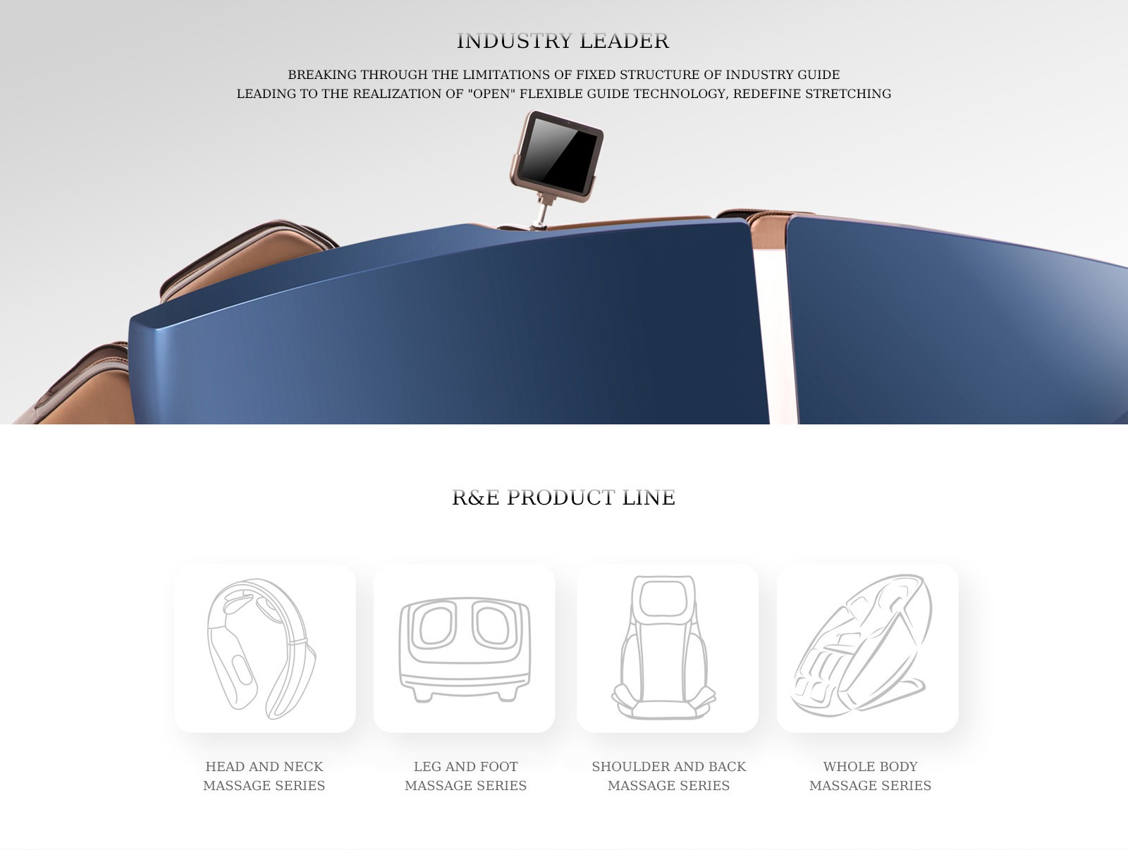 Nuestros sillones de masaje R&E; están diseñados ergonómicamente para que las personas se sientan cómodas, se relajen y disfruten. Desarrollamos más de 30 sillones de masaje de alta gama con patentes y certificaciones de calidad de productos. Empleamos a 30 ingenieros profesionales de I + D eléctrica, que pueden personalizar sillones de masaje con diversas funciones y efectos para los clientes. R&E; tiene canales de I+D, gestión y ventas completamente independientes, e integra tecnología inteligente y ergonómica en el desarrollo de productos para crear una vida de "salud + inteligencia". Brindamos el servicio más cómodo en varios lugares donde necesita estar, como hogar, oficina, aeropuerto, cine, hospital, centro comercial, etc.